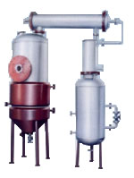 2.為克服濃縮罐頂二次蒸汽在未進(jìn)入冷凝器前被冷凝而返回罐內(nèi)的缺點(diǎn)。本設(shè)備將冷凝器改為斜臥式;