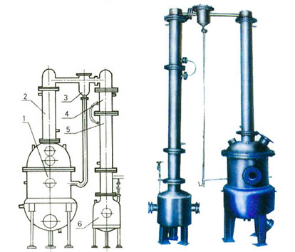 本設(shè)備主要包括濃縮罐、第一冷凝器、汽液分離器、第二冷凝器、冷卻器、受液桶六個(gè)部件組成,全部有不銹鋼制造。濃縮罐為夾套結(jié)構(gòu),冷凝器為列管式,冷卻器為蛇管式。