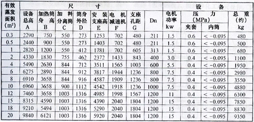 表1:薄膜蒸發(fā)器的外形尺寸及部份技術(shù)規(guī)格表